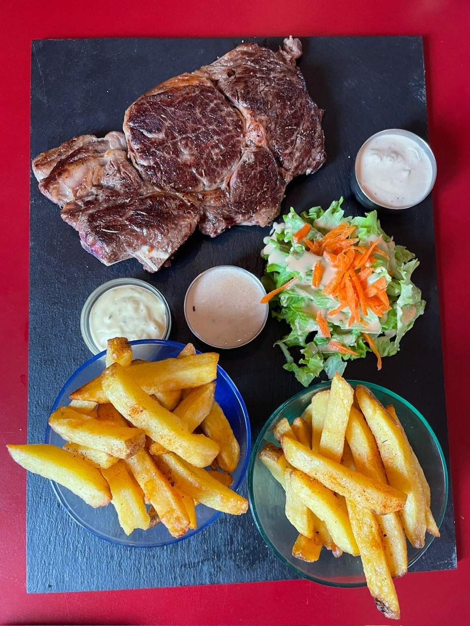 Steak / Cheddar / Oignon confit / Tomates / Sauce burger